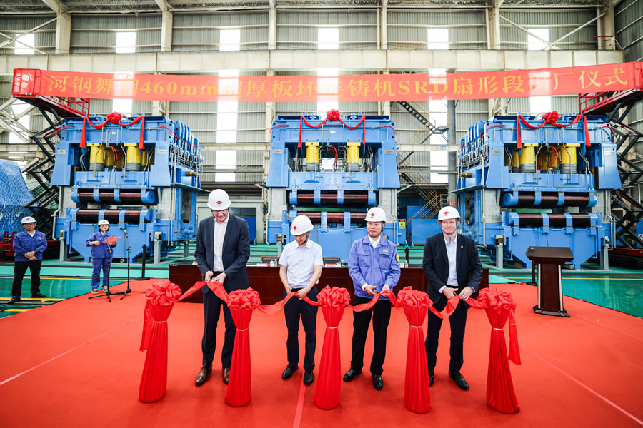 4月29日上午,在寶菱重工連鑄裝配中心,隆重舉行了“河鋼舞鋼460mm超厚板坯連鑄機SRD扇形段出廠儀式”。河鋼集團舞鋼公司、寶菱重工、普銳特中國、普銳特奧地利等四方的主要領導和員工代表出席儀式,共同見證?了全球領先的460mm超厚板坯連鑄機SRD扇形段?正式出廠的榮耀時刻。此次出廠儀式,不僅標志著460mm超厚板坯連鑄機SRD扇形段的圓滿交付,更彰顯了河鋼集團舞鋼公司、普銳特、寶菱重工在超厚板坯